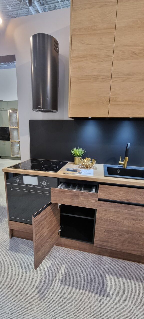 Fronty szafek WO, WOG, górne fronty szafek WOW, WWPO oraz front nad mikrofalą uchylane są za pomocą odbojnika Tip-On.