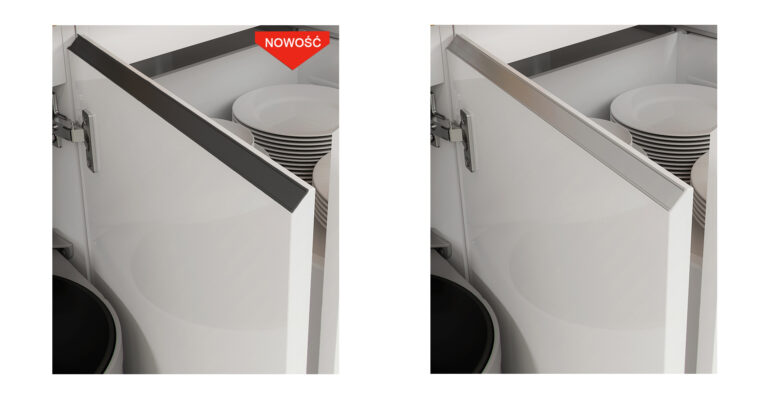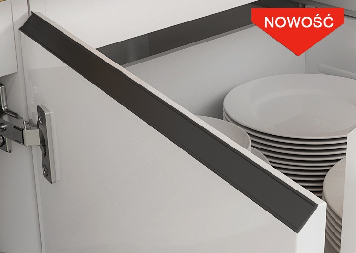 UCHWYT – zintegrowany z frontem, wykończony stylową nakładką z aluminium w kolorze aluminium lub w czarnym macie